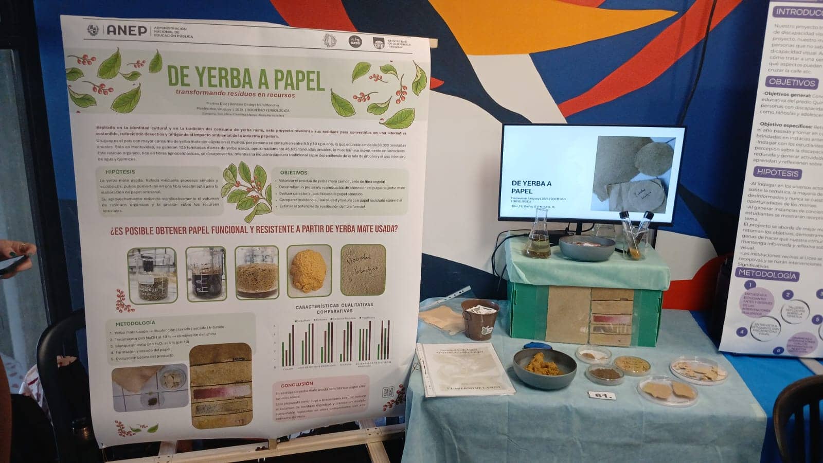 Alexia, en tanto, ya había tenido una experiencia previa en 2024 con un grupo de liceales a los que también tutoreó para los Clubes de Ciencia. Este año trabajó junto a los estudiantes de UTU en un proyecto de bioquímica para la conversión de residuos de yerba en papel. La idea surgió a partir de varios intercambios sobre herramientas con las que estaban trabajando en clase. Luego vinieron horas y horas de ensayo y error.