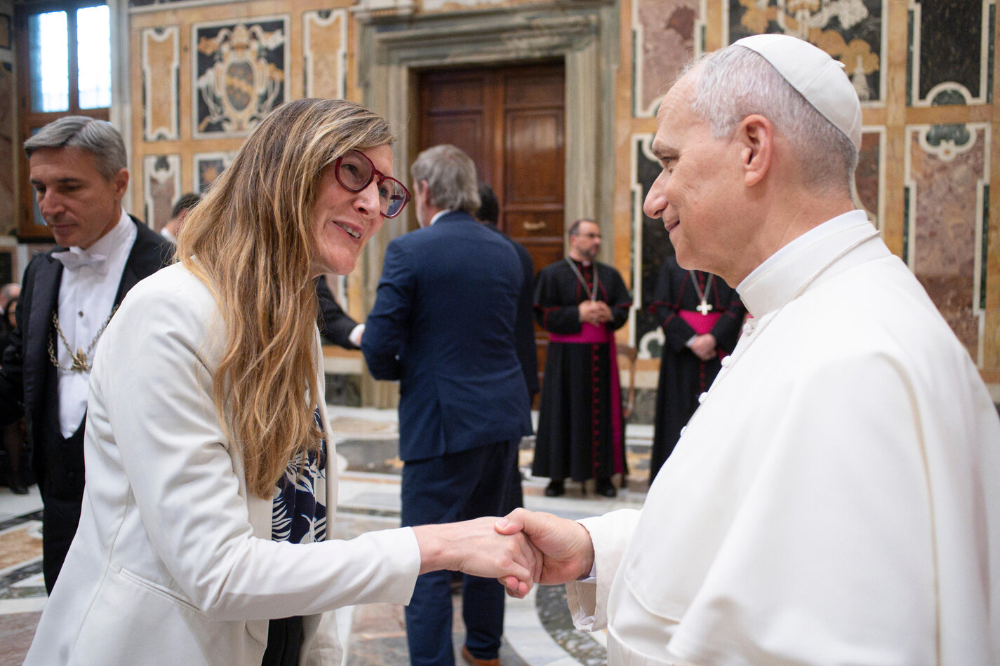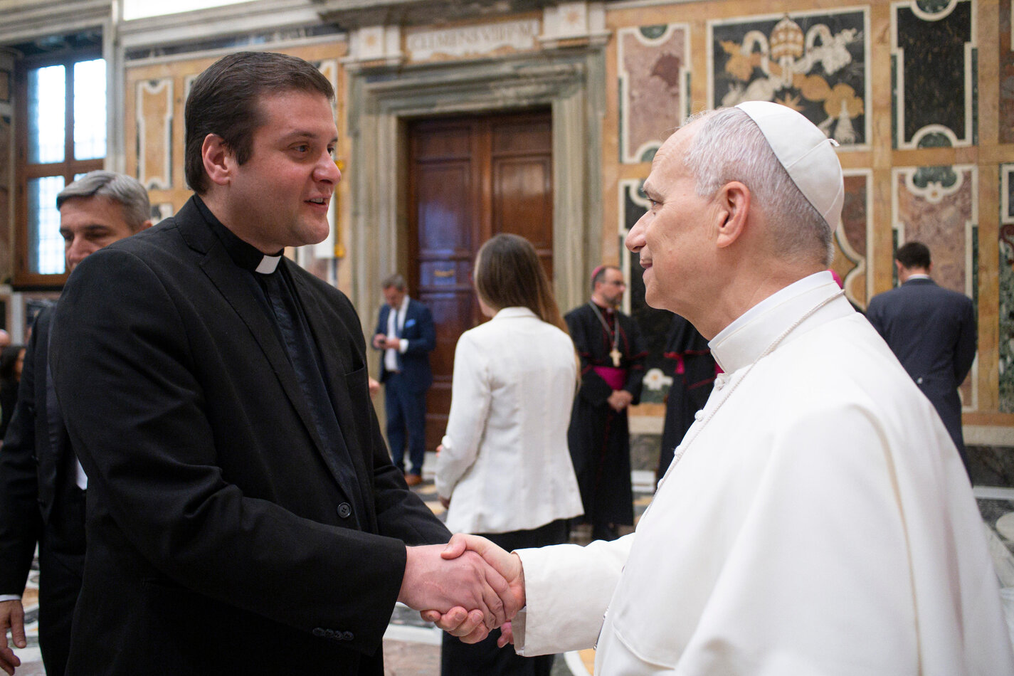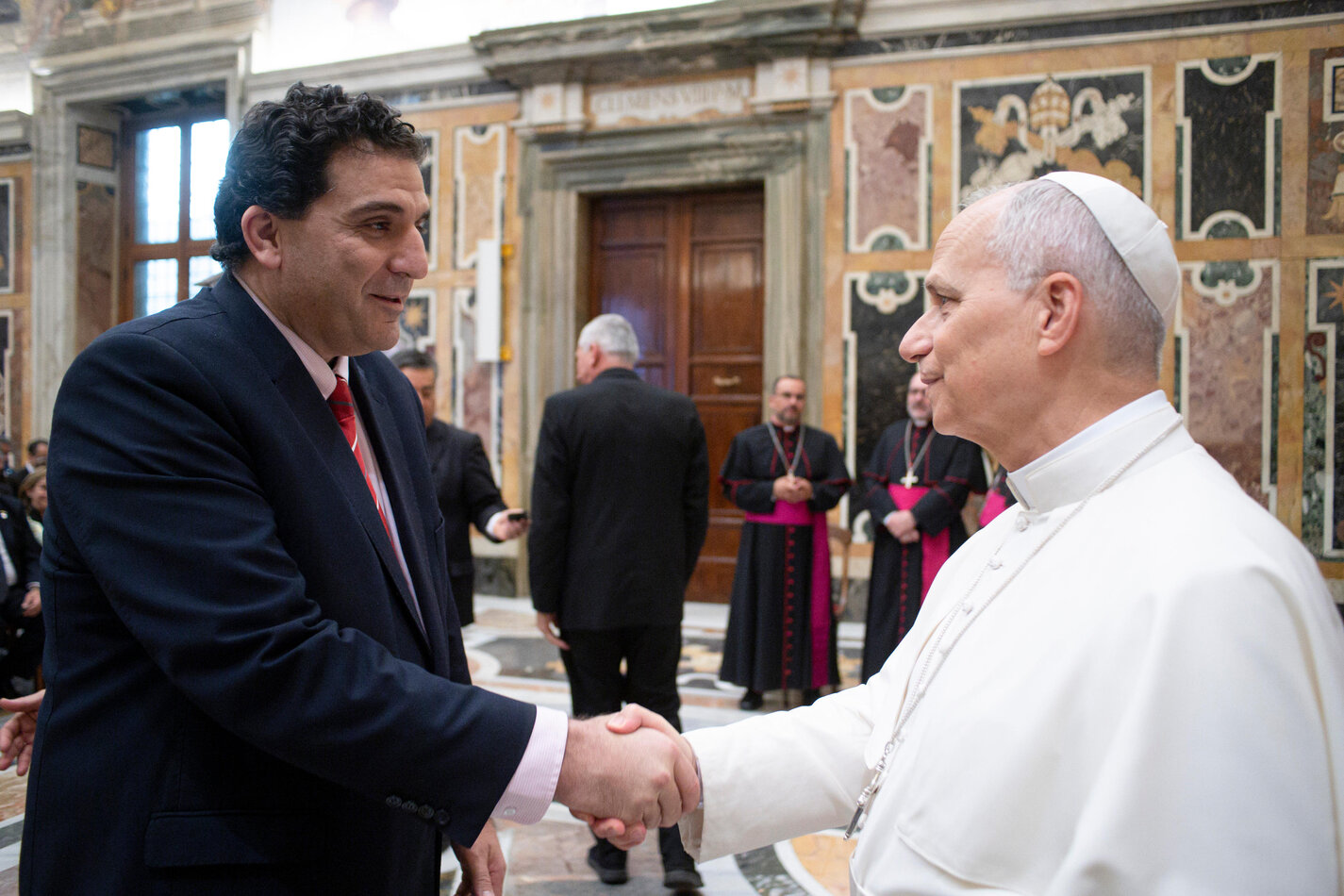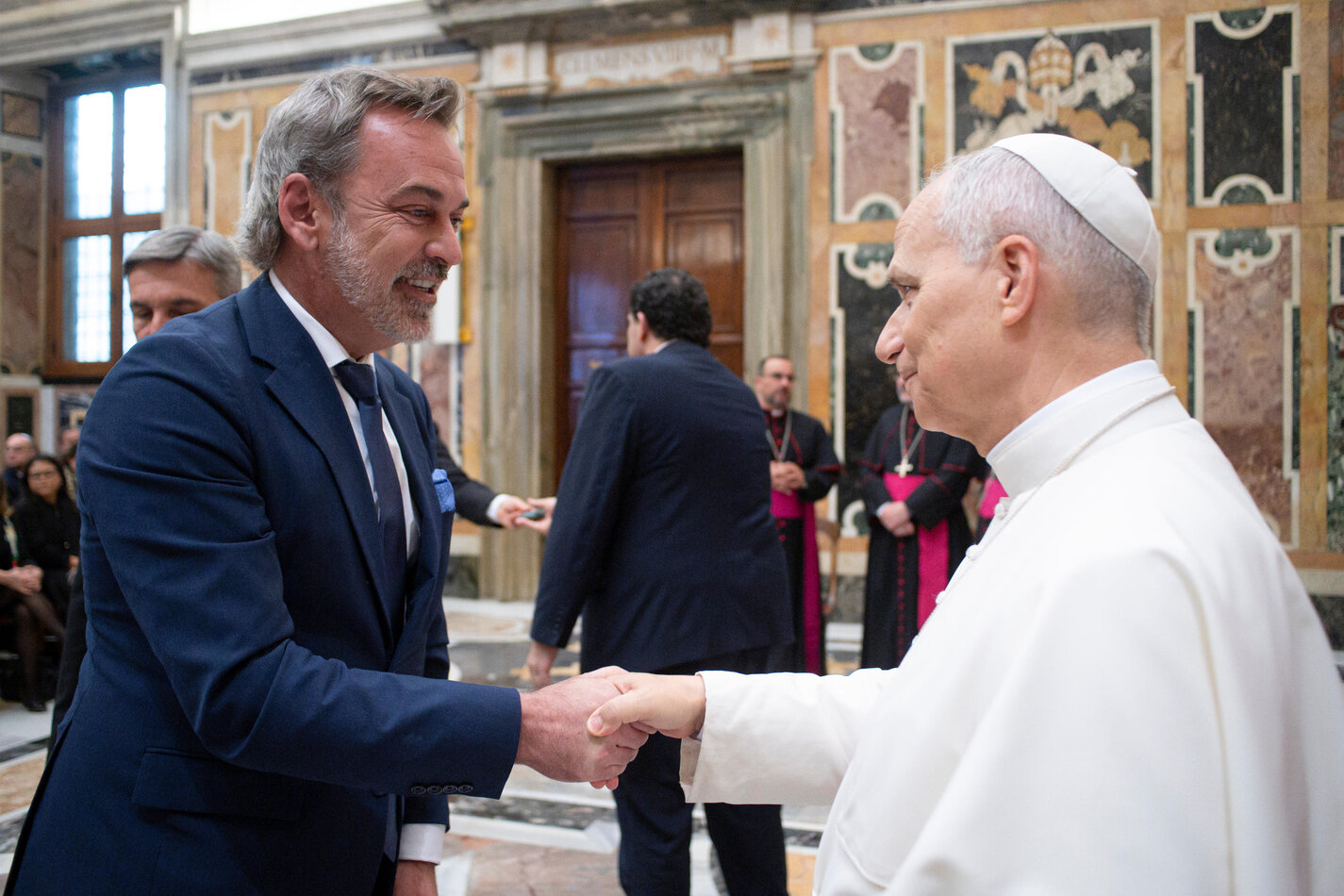 La jornada comenzó con una audiencia privada en la Sala Clementina del Palacio Apostólico, donde el Papa León XIV recibió a un centenar de representantes de la Organización de Universidades Católicas de América Latina (ODUCAL). Fue un momento muy emotivo, en el que el Santo Padre saludó personalmente a cada uno de los participantes.