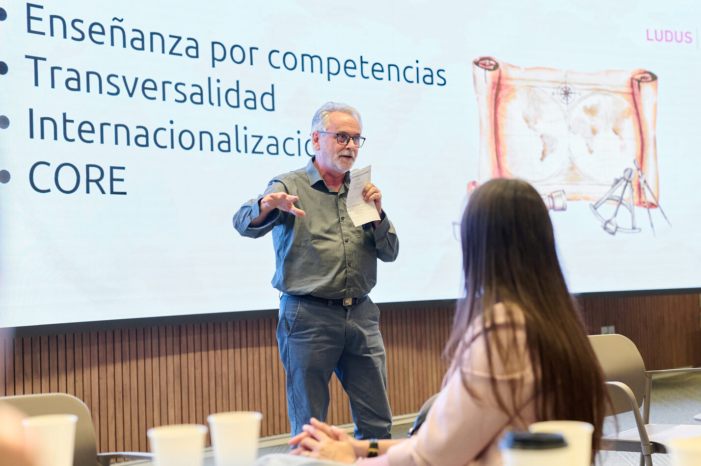 El encuentro tuvo lugar en el auditorio del edificio San José y reunió a cerca de 50 profesores que se incorporan este año a la universidad. La actividad fue organizada por el Centro Ludus, espacio dedicado al desarrollo y acompañamiento pedagógico de los profesores de la universidad.