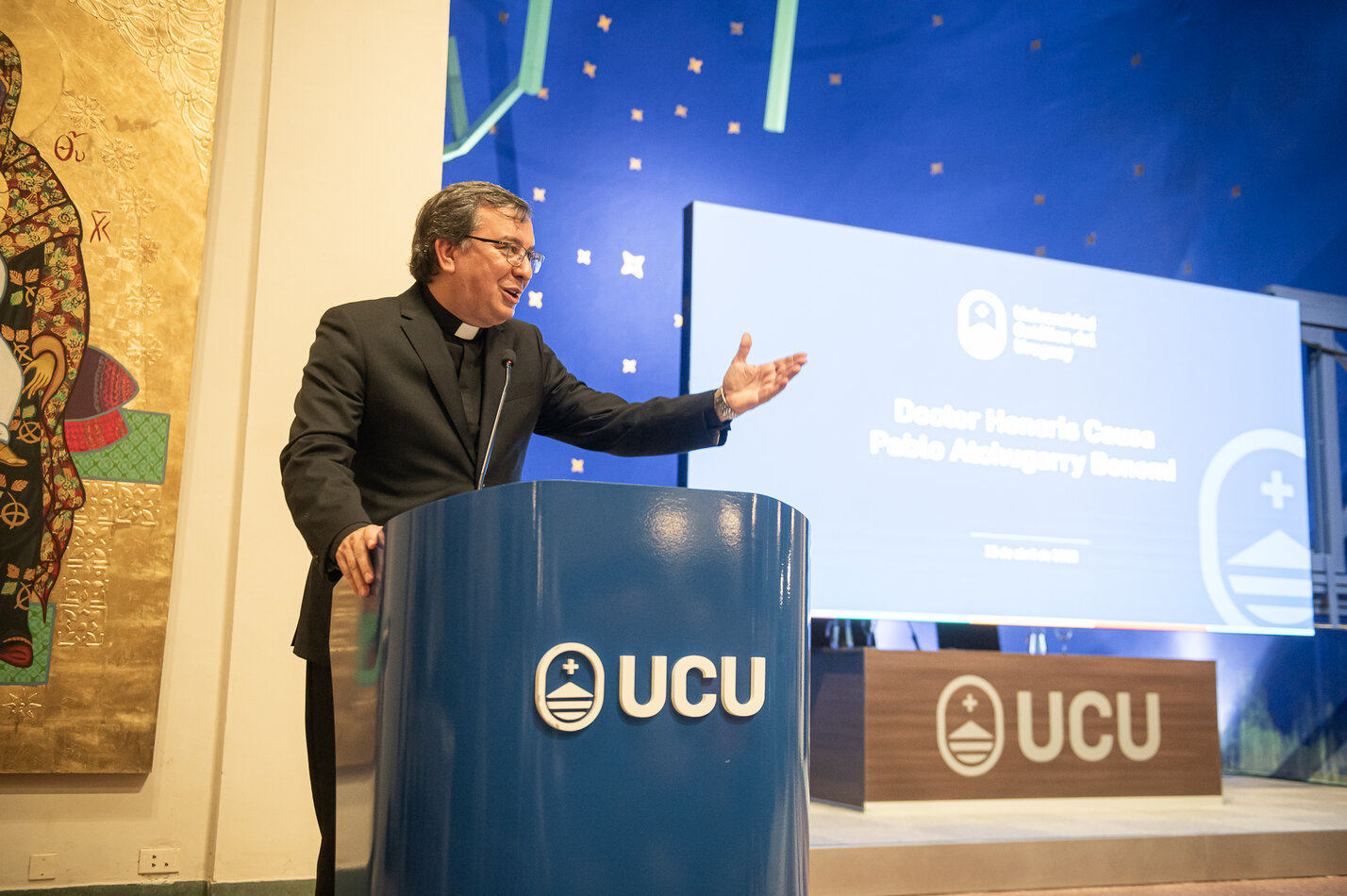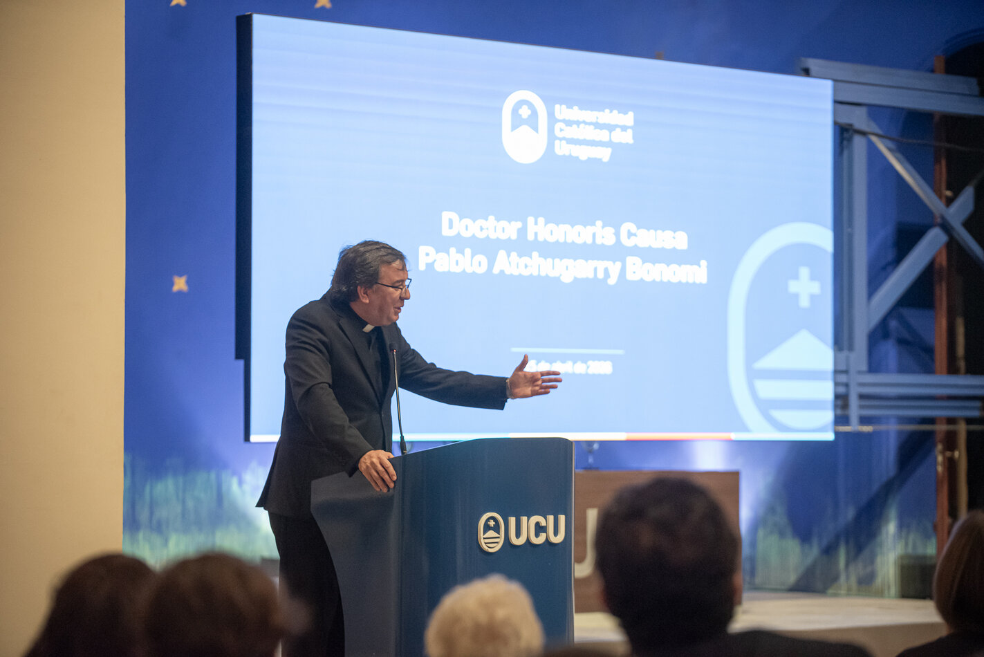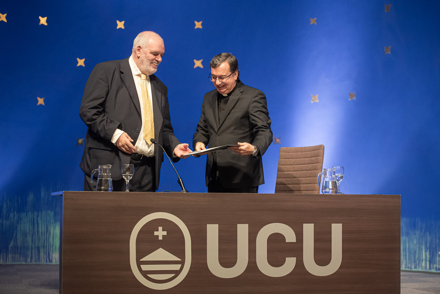 El rector de la UCU, P. Dr. Julio Fernández Techera, S.I., destacó que se trata de “un reconocimiento a uno de los artistas más importantes del Uruguay, pero es también un reconocimiento al arte”.