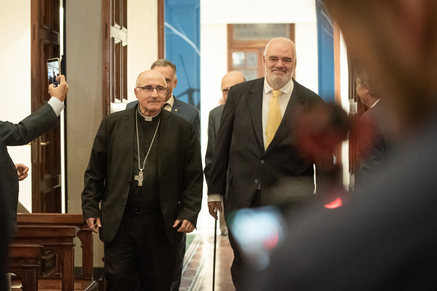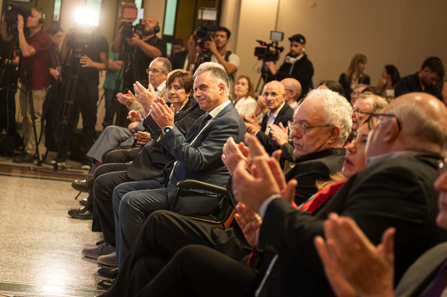 Participaron el presidente de la República, Yamandú Orsi, el expresidente Julio María Sanguinetti, el cardenal Daniel Sturla, el ministro de Educación y Cultura, José Carlos Mahía, el canciller Mario Lubetkin, junto a otras autoridades nacionales y departamentales. La ceremonia contó, además, con la presencia de la concertista Cristina García Banegas, quien interpretó obras de los compositores italianos Antonio Vivaldi, Domenico Zipoli y Domenico Scarlatti en el órgano del Aula Magna..